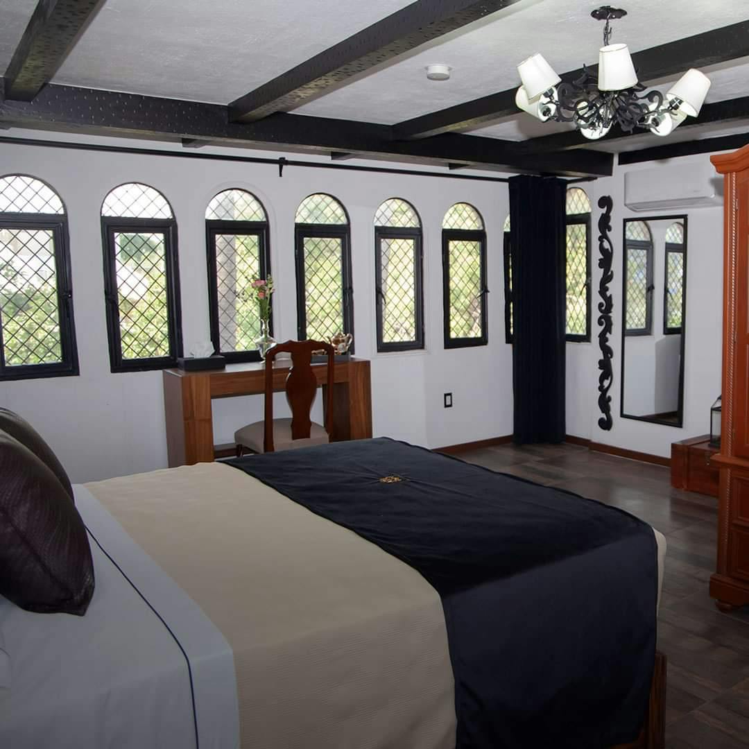 Habitaciones de 25 mts2, ubicadas en el tercer piso de la propiedad. Constan de una cama queen, 2 burós con lámparas, escritorio de trabajo, portaequipaje, closet, vista a Av. Chapalita, closet, plancha y tabla de planchar, TV plana con cable, secadora, espejo de vanidad, espejo de baño y espejo de cuerpo completo, aire acondicionado, regadera de lluvia, amenidades de baño by Vervan, perchero de madera. Capacidad máxima 2 personas.